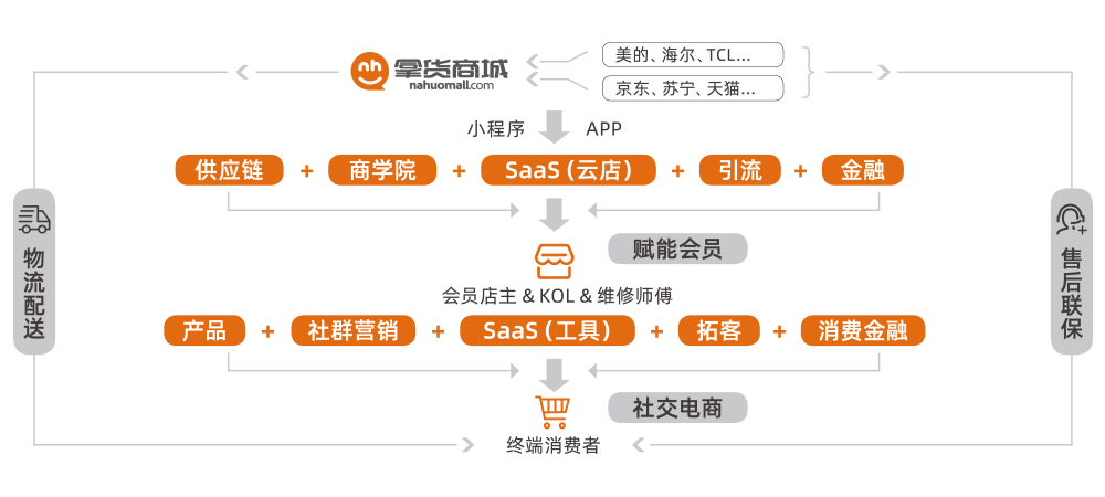 拿货商城于2016年8月上线,是慧聪集团旗下B2B2C电商平台。平台以信息化和大数据为驱动,以全方位服务为核心,依托一县一服务点,整合县乡镇家电零售网点,为实体门店提供“云分销系统”与“社区微营销工具”,让店铺零资金零库存零售后经营,实现线下体验和服务线上供货的新零售。